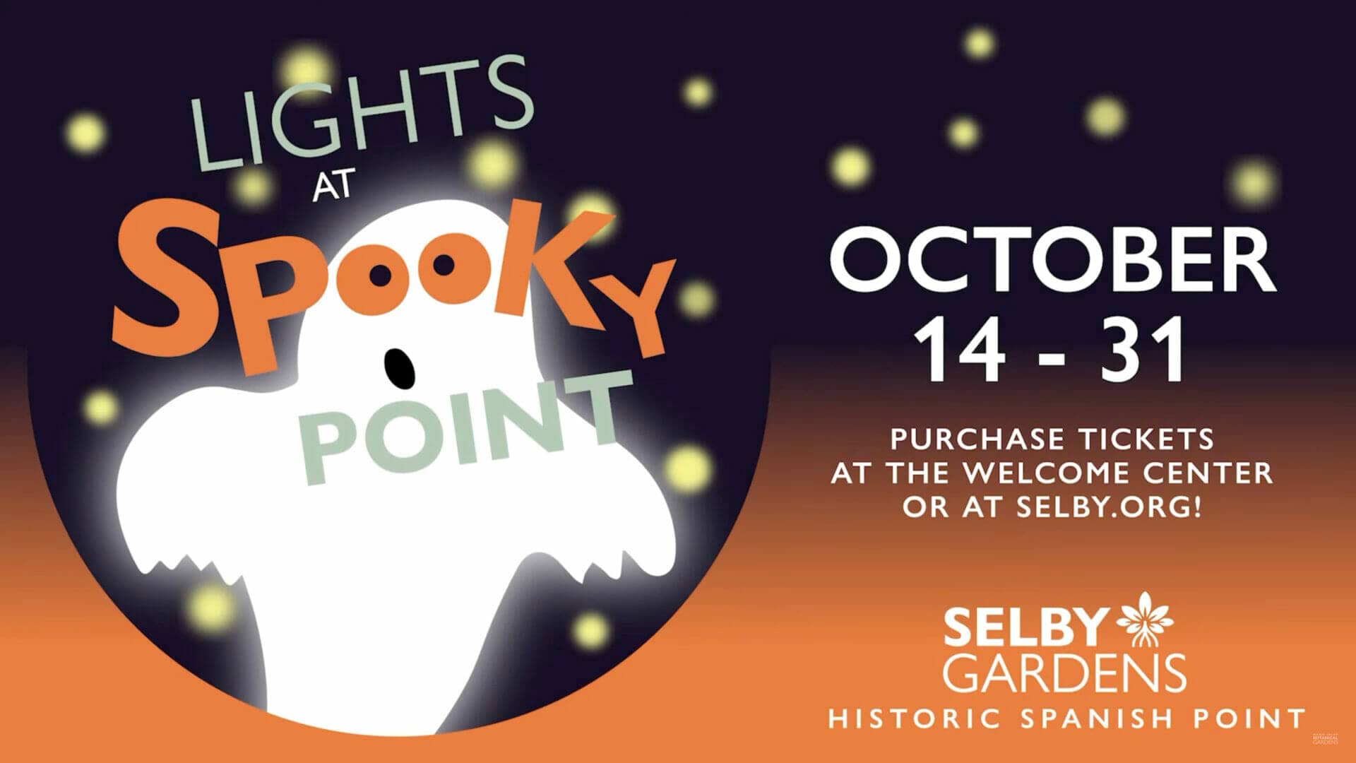 Featured Lights at Spooky Point Marie Selby Botanical Gardens Historic Spanish Point 401 N Tamiami TR, Osprey October 14, 2022 - October 31, 2022 UTC Event Details Get Directions