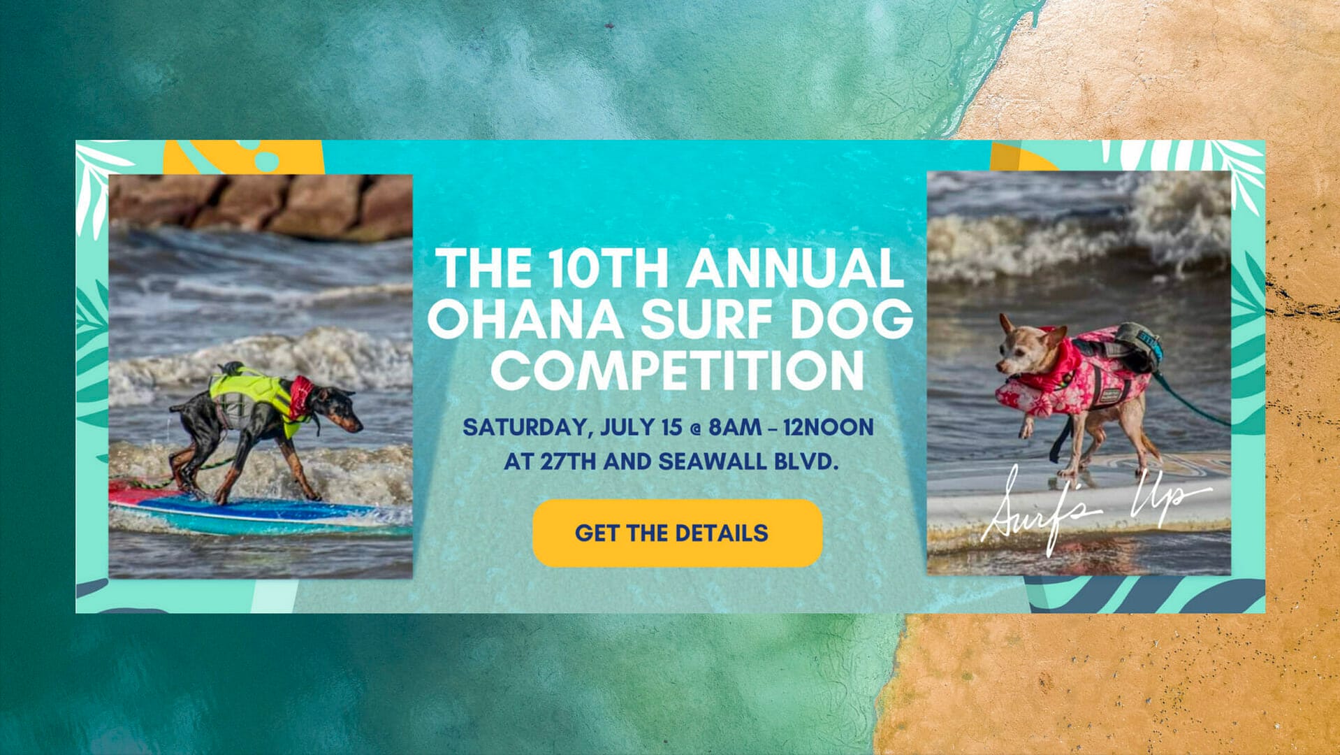 Featured Ohana Surf Dog Competition Menard Park 2222 28th ST, Galveston July 15, 2023 Event Details Get Directions