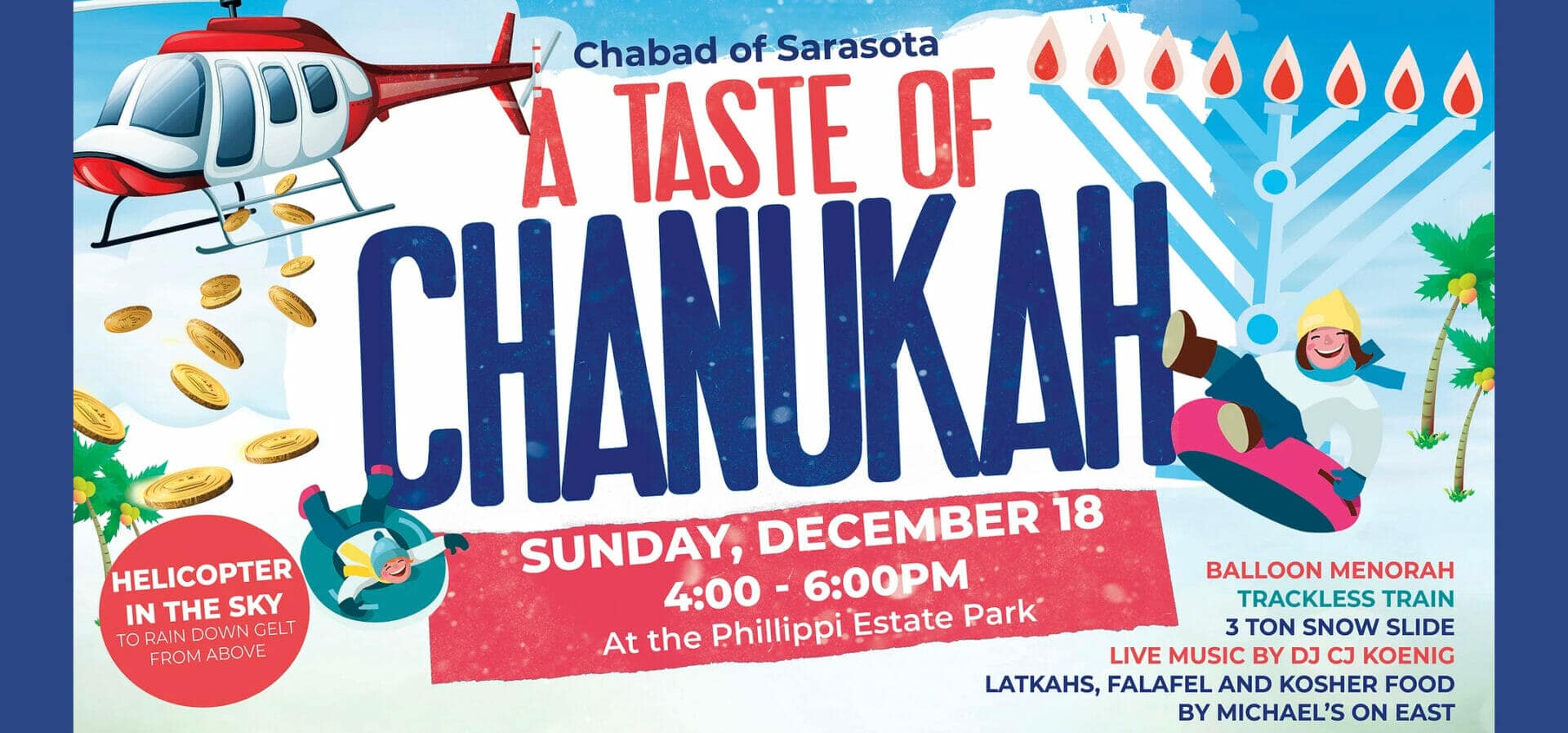 Featured A Taste of Chanukah Chabad Lubavich of Sarsasota & Manatee Counties 7700 S Beneva RD, Sarasota December 10, 2023 Event Details Get Directions