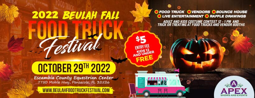 Featured Beulah Fall Food Truck Festival Escambia County Equestrian Center 7750 Mobile HWY, Pensacola October 29, 2022 CDT Event Details Get Directions